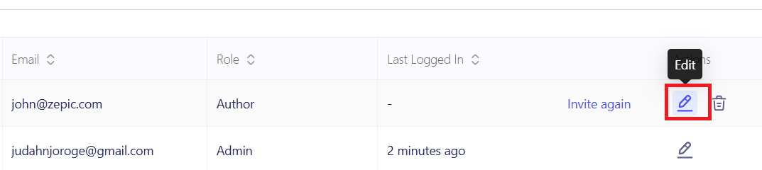 Edit Role: Click the Edit (pencil) icon next to their current role.