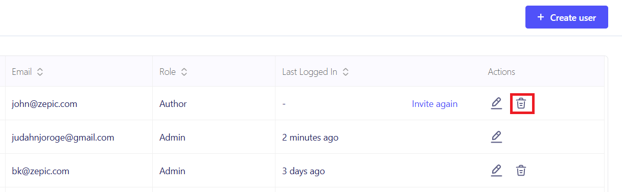 Removing a user instantly revokes all their access to the ZEPIC account.