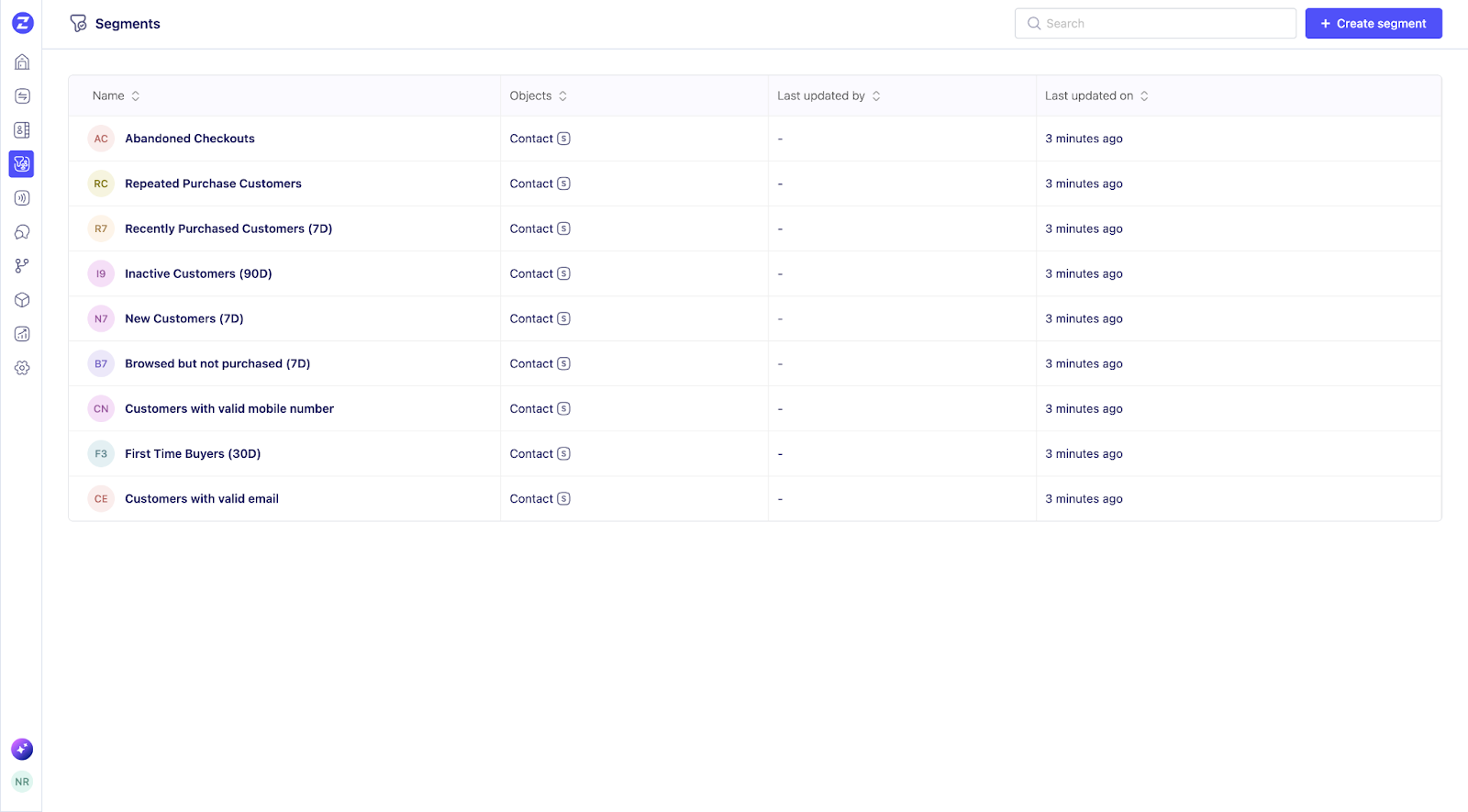 New Shopify integrations now automatically create 8 ready-to-use segments at signup: Abandoned Checkouts, Repeated Purchase Customers, Recently Purchased Customers, Inactive Customers, New Customers, Browsed but not purchased, and First Time Buyers. These segments provide immediate value without manual configuration, enabling users to launch targeted campaigns right away.