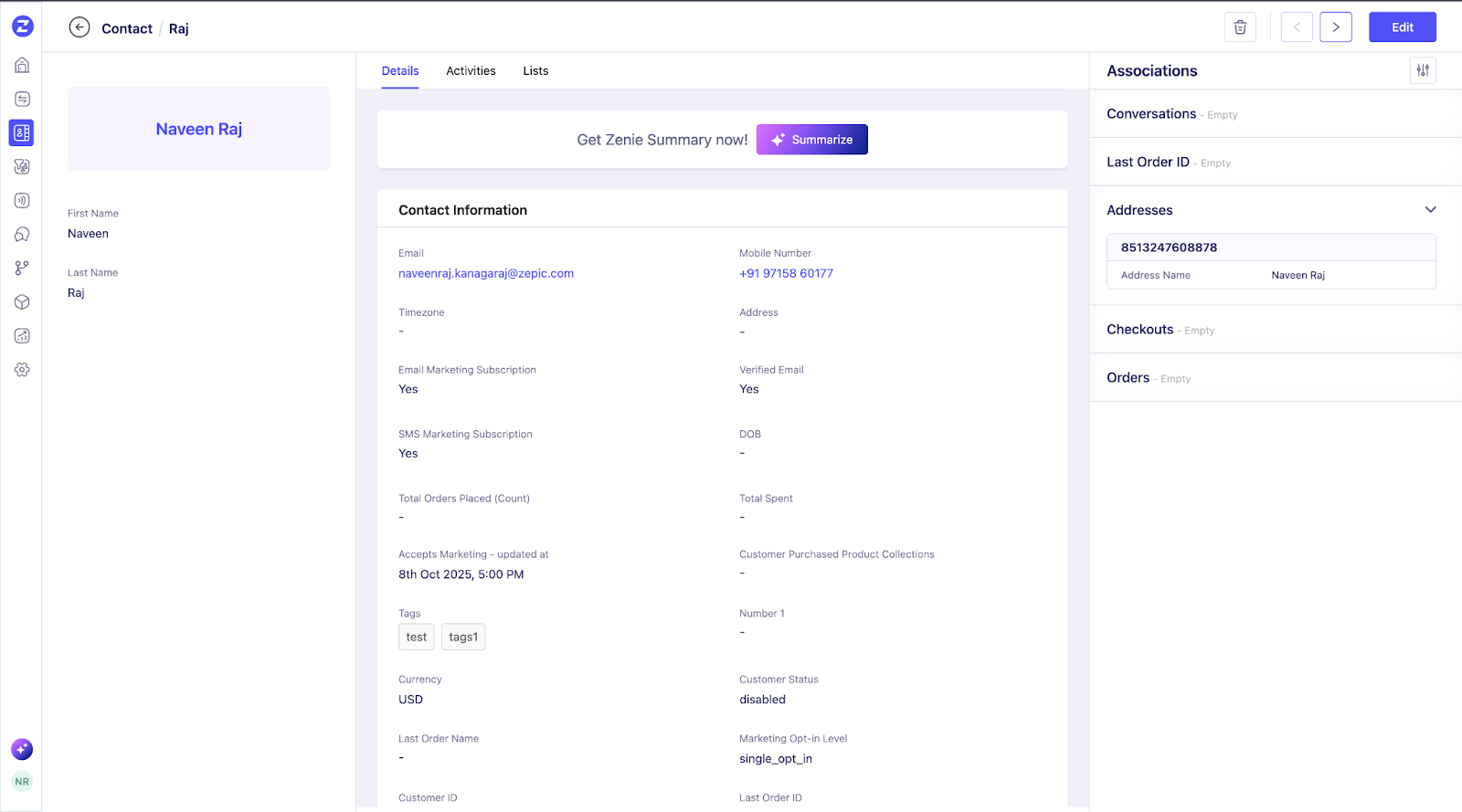 We have introduced several powerful additions to the Shopify connector. Customer tags now sync automatically between Shopify and ZEPIC, ensuring tag-based segmentation stays current. Email and SMS marketing subscription preferences from Shopify are now synced, allowing users to respect customer consent settings across all campaigns. Order fulfillment status is now available as a field in the Order object, enabling segmentation and campaign triggers based on fulfillment stages (unfulfilled, partially fulfilled, fulfilled).