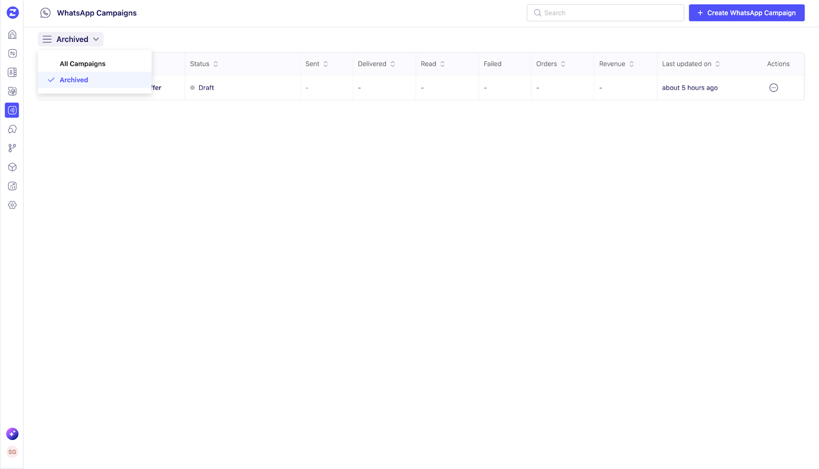 We have introduced archive capabilities across Email campaigns, WhatsApp campaigns, Flows, Connectors, Segments and WhatsApp templates. Users can now archive items to remove them from active view while preserving all data and analytics. This helps keep workspaces organized and focused on current initiatives. This is particularly valuable for agencies managing numerous campaigns or teams that want to maintain clear separation between active and inactive projects.