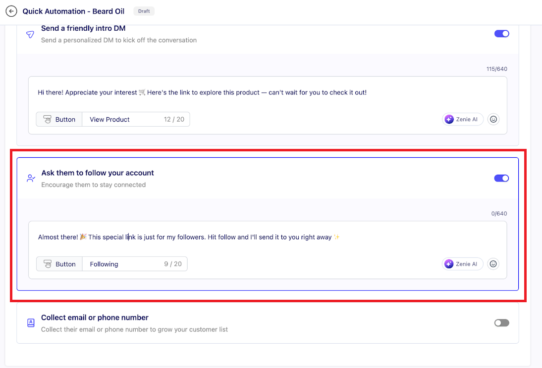 Your Instagram Automation is ready. Now ZEPIC will automatically: