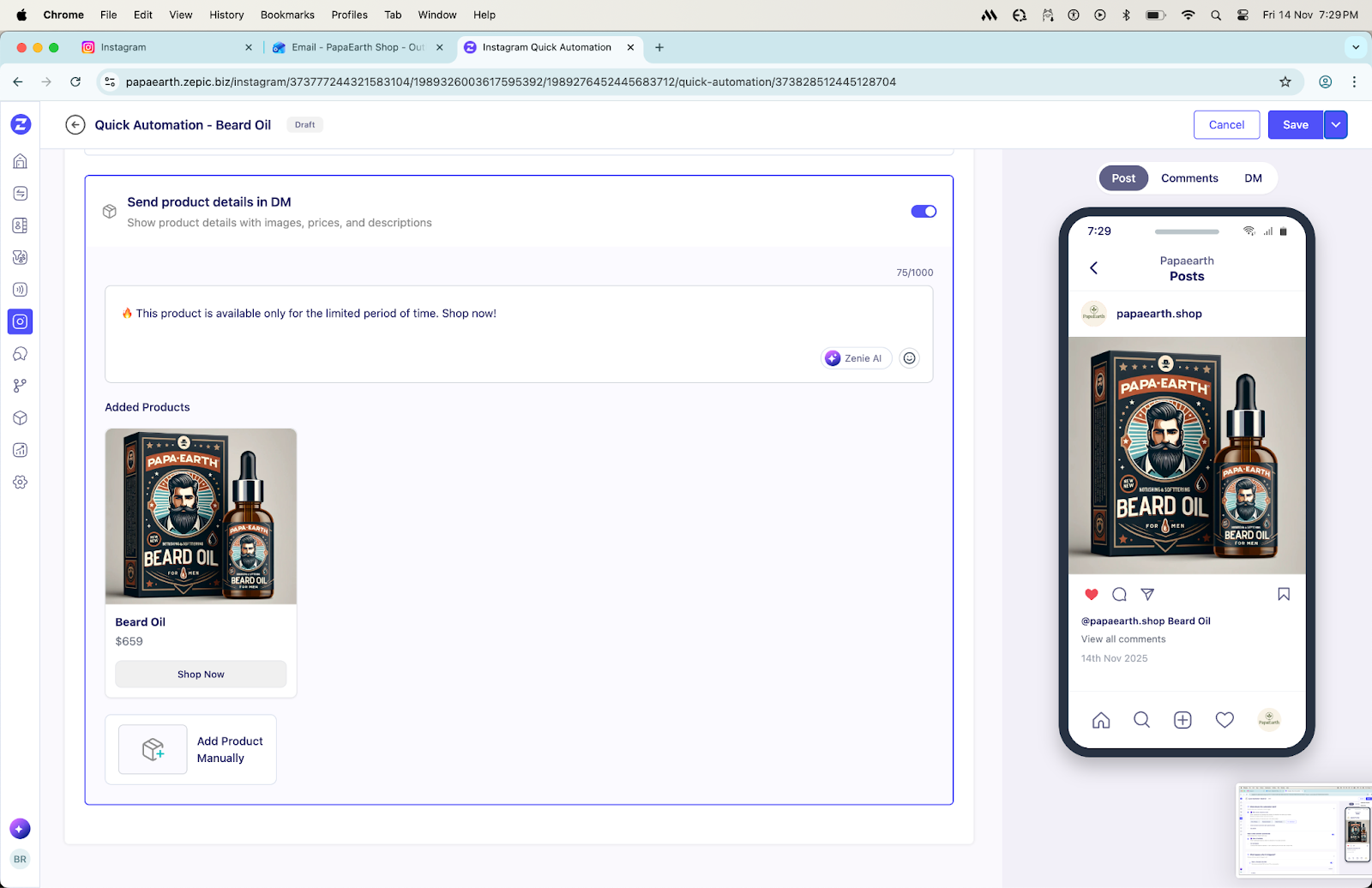 Your Instagram Automation is ready. Now ZEPIC will automatically: