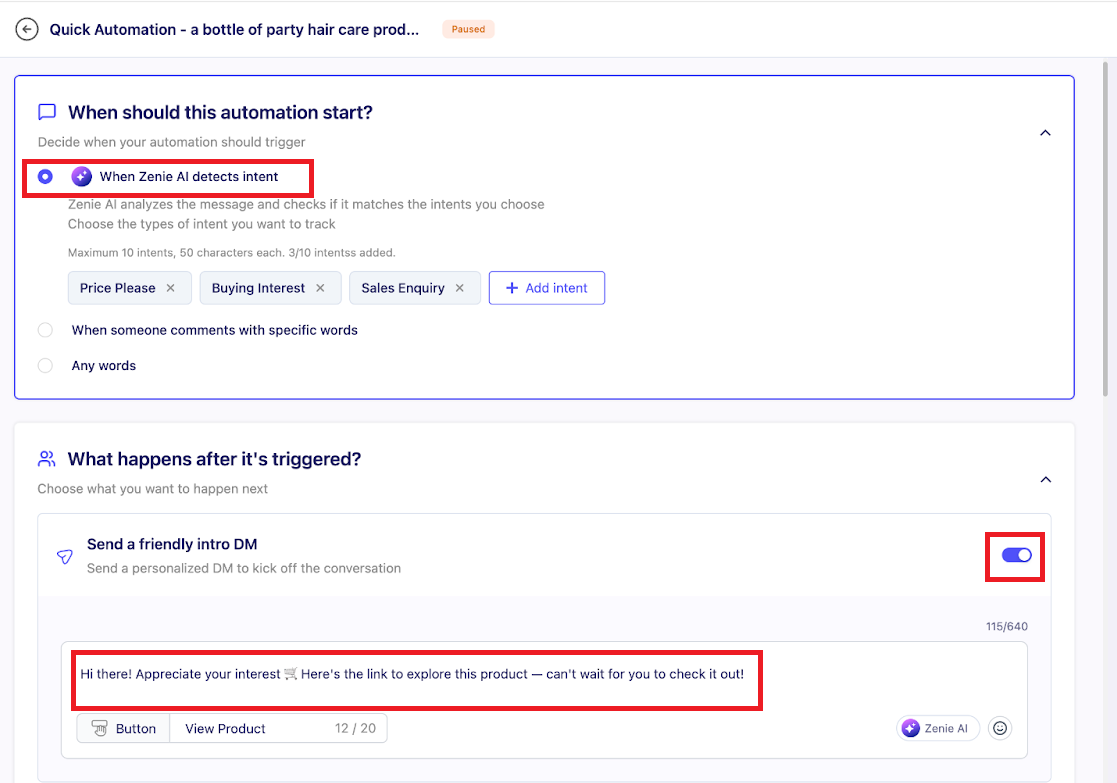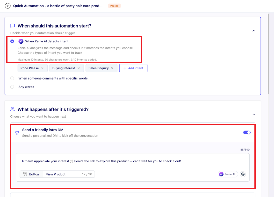 Zenie AI understands meaning — not just keywords. It identifies Price Enquiry, Buying Intent, or Sales Inquiry in any language.