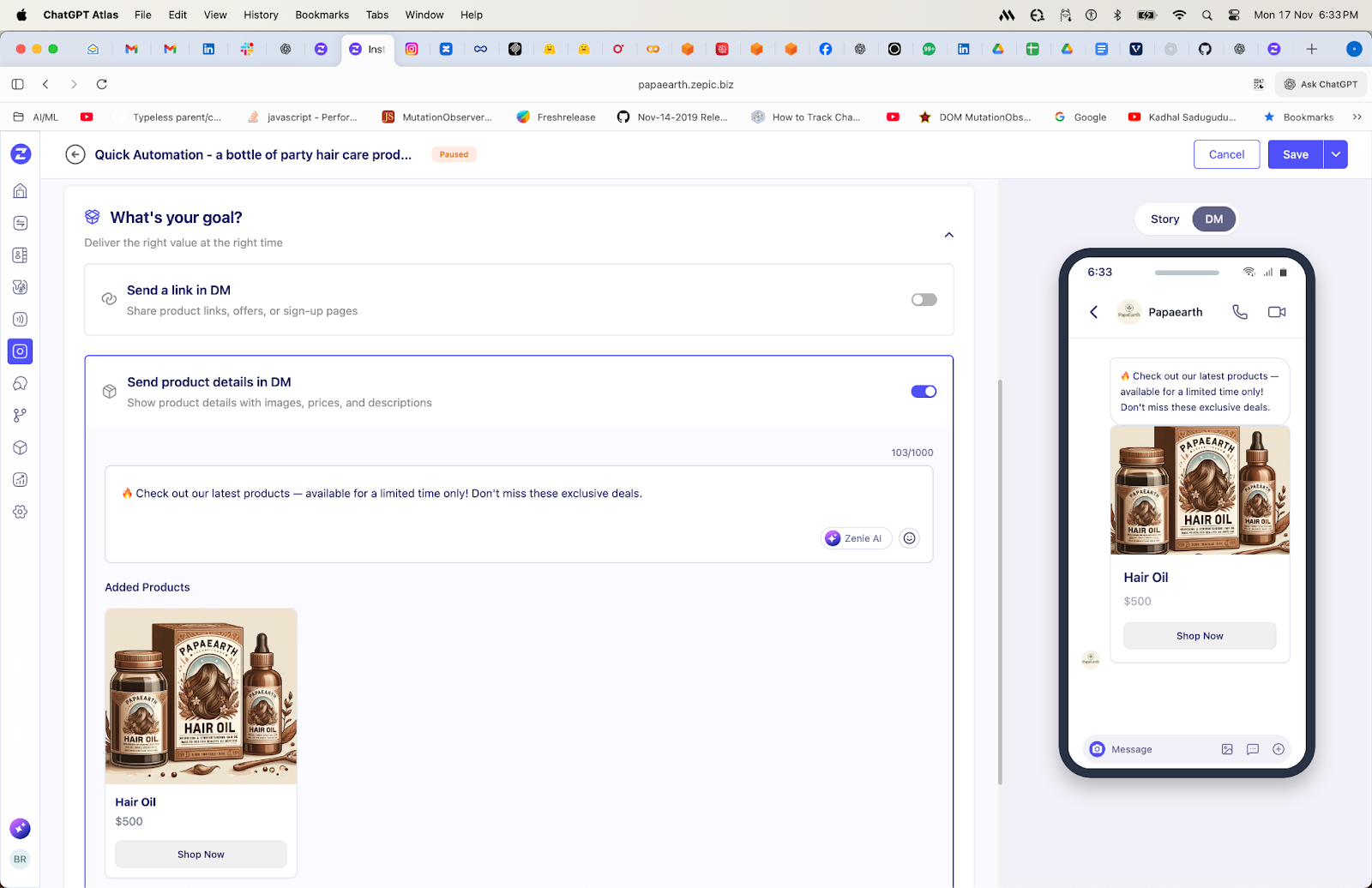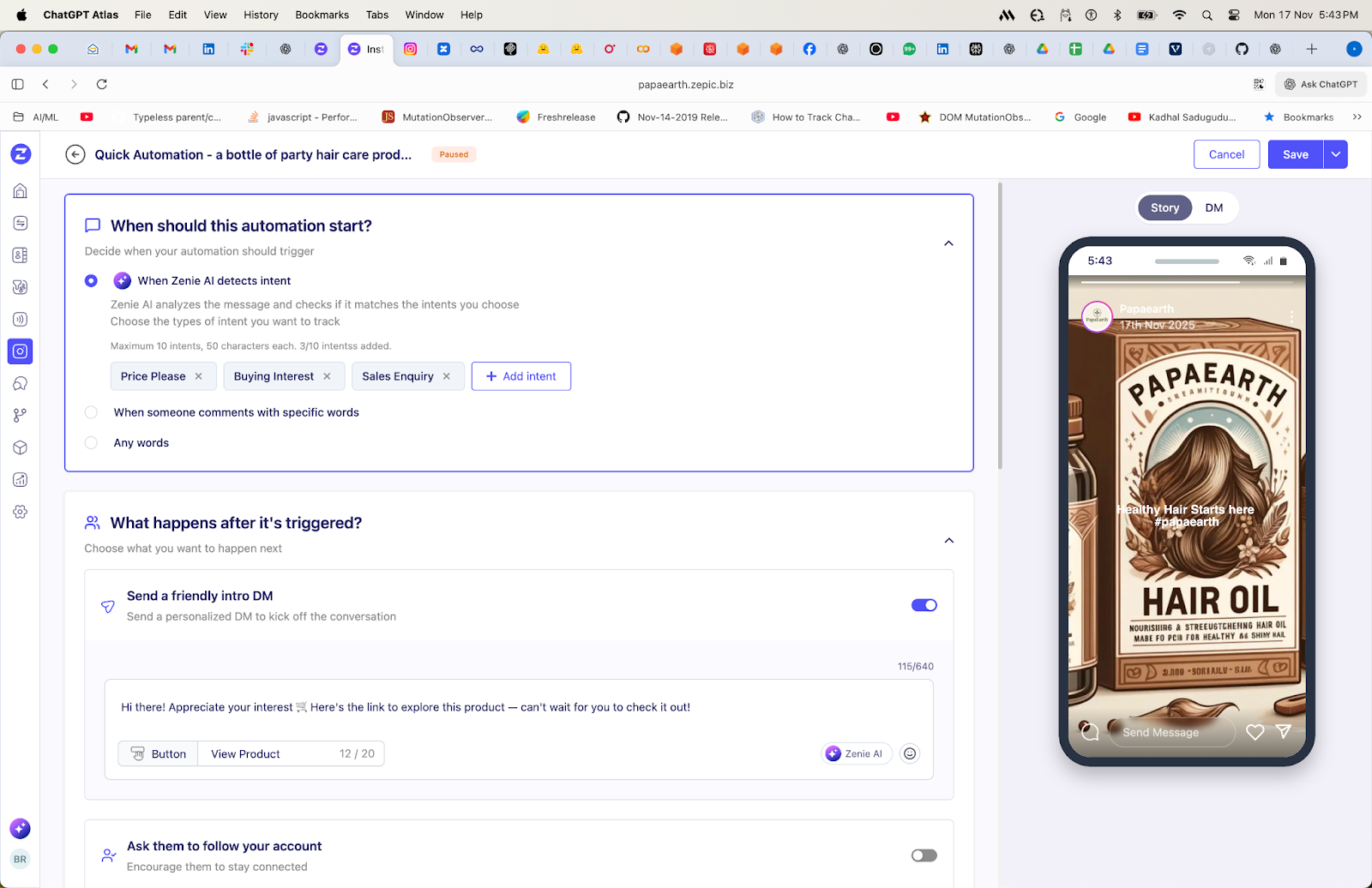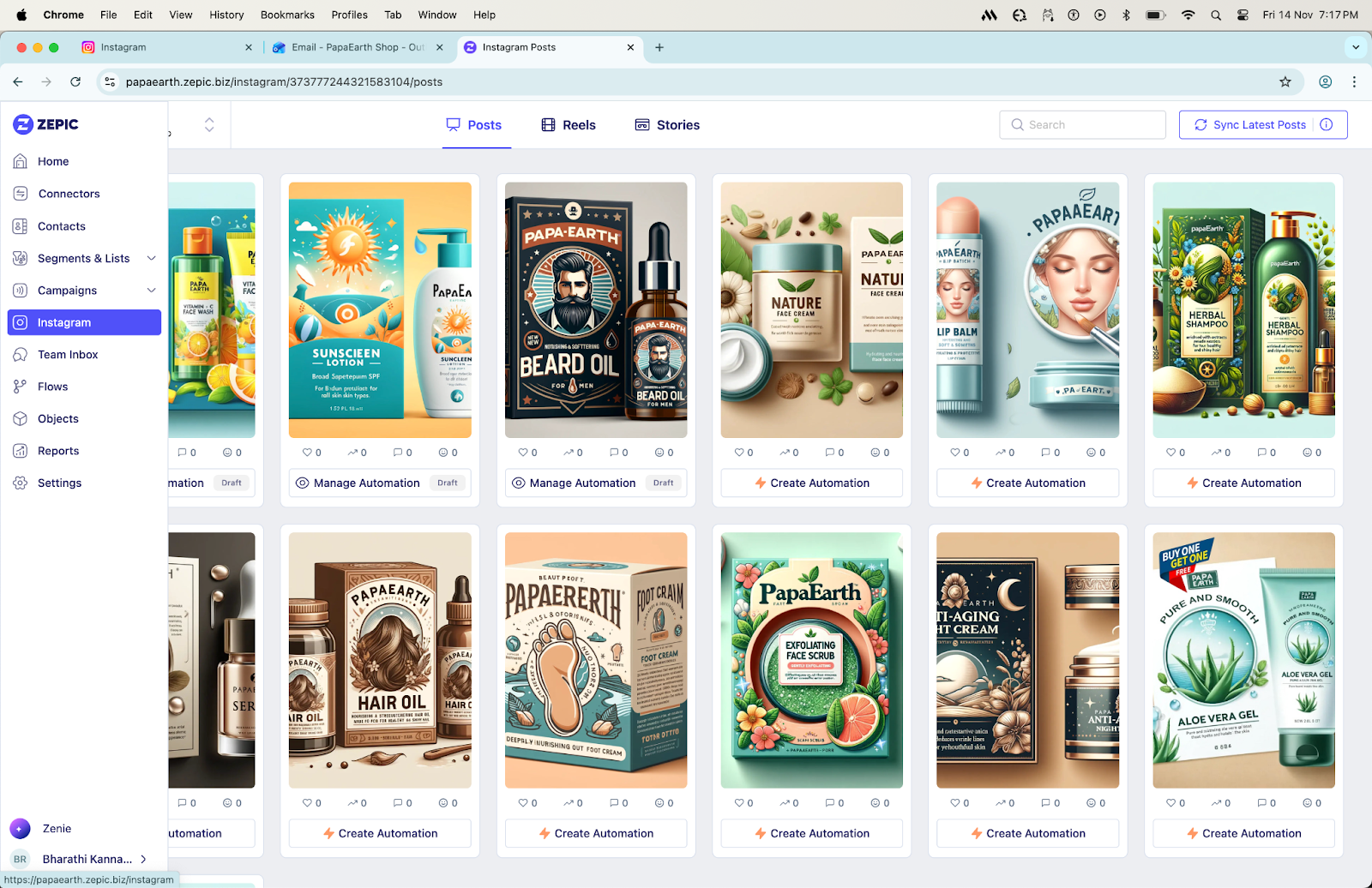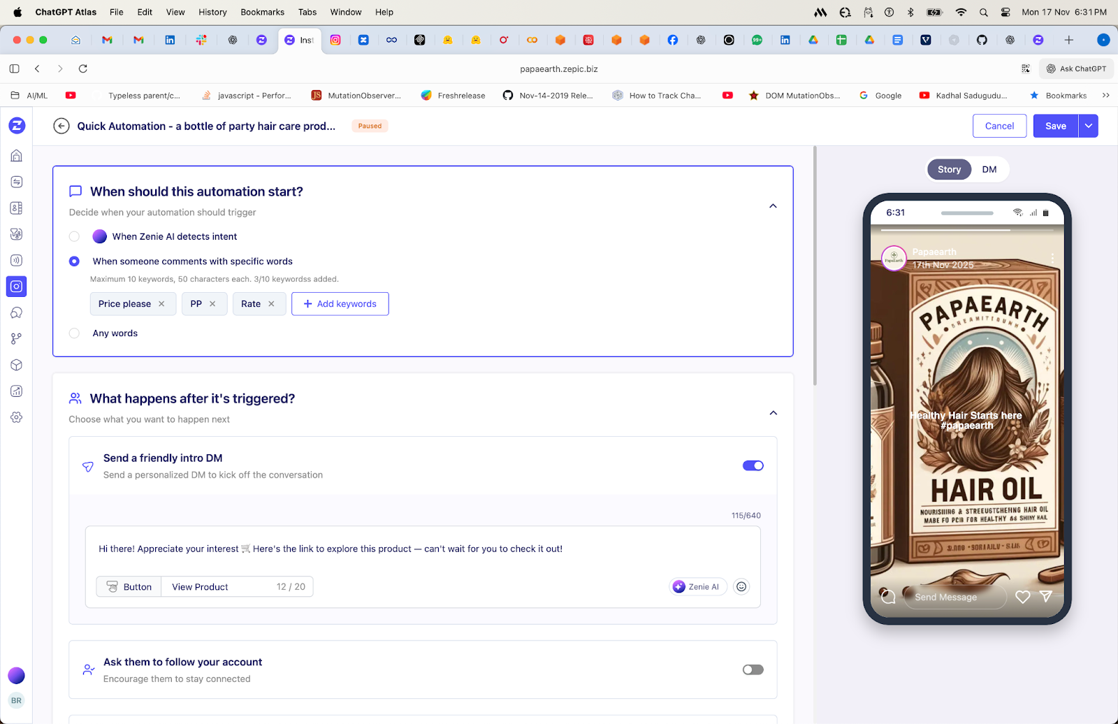 This article explains how to automate your Instagram Story replies using ZEPIC. To illustrate this, imagine PapaEarth—a brand that wants to automatically respond to any user who replies to their story asking for pricing details.