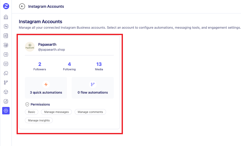 3. Choose your business account (e.g., Papaearth) to open its settings.