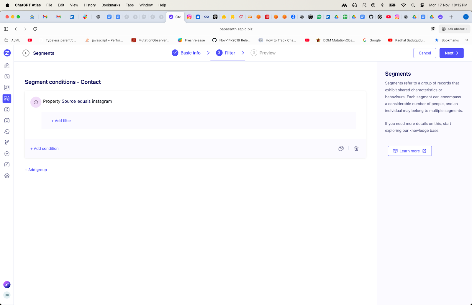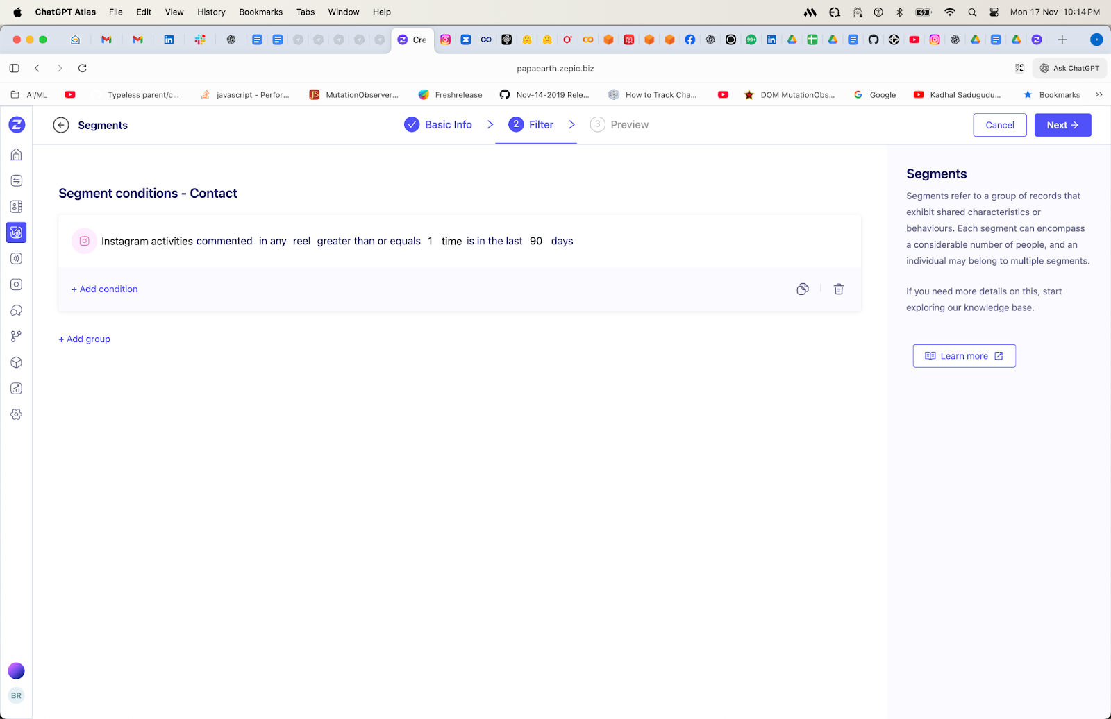You can also combine Instagram activities, with contact properties, and other channel activities. Now, using these segments you can target the same user in Whatsapp and Email as well. This enables true omnichannel experience.
