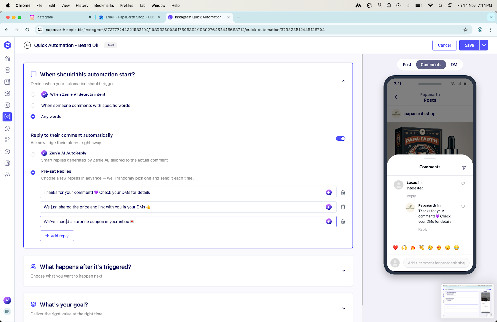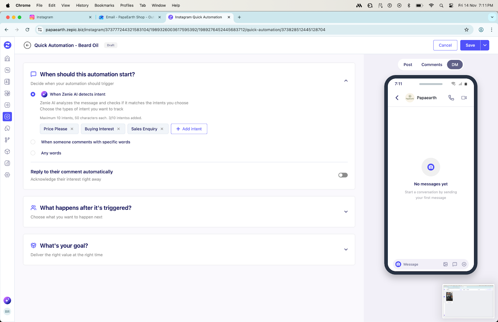 This means if someone asks about price in any wording or language, ZEPIC will automatically recognize it and trigger the automation.