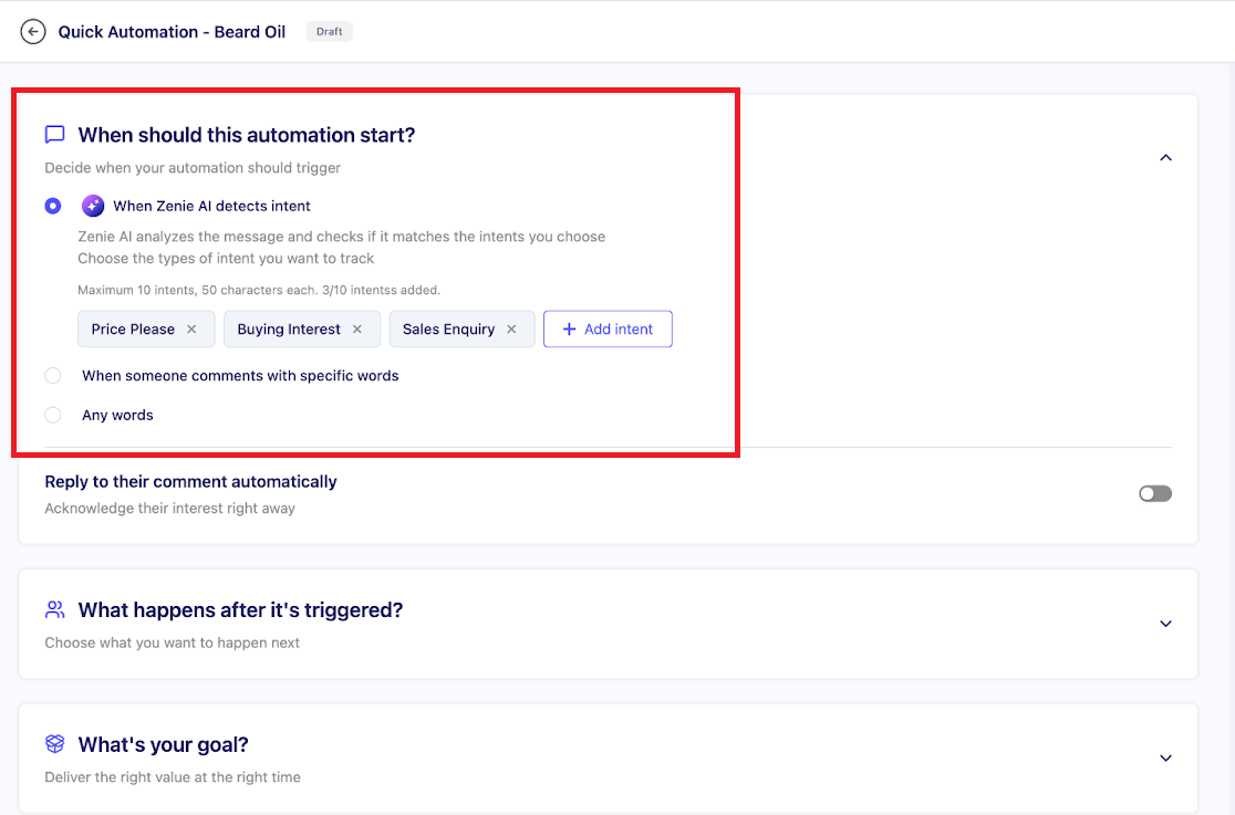 • When should it start? (Intent-based, keyword-based, or any comment)