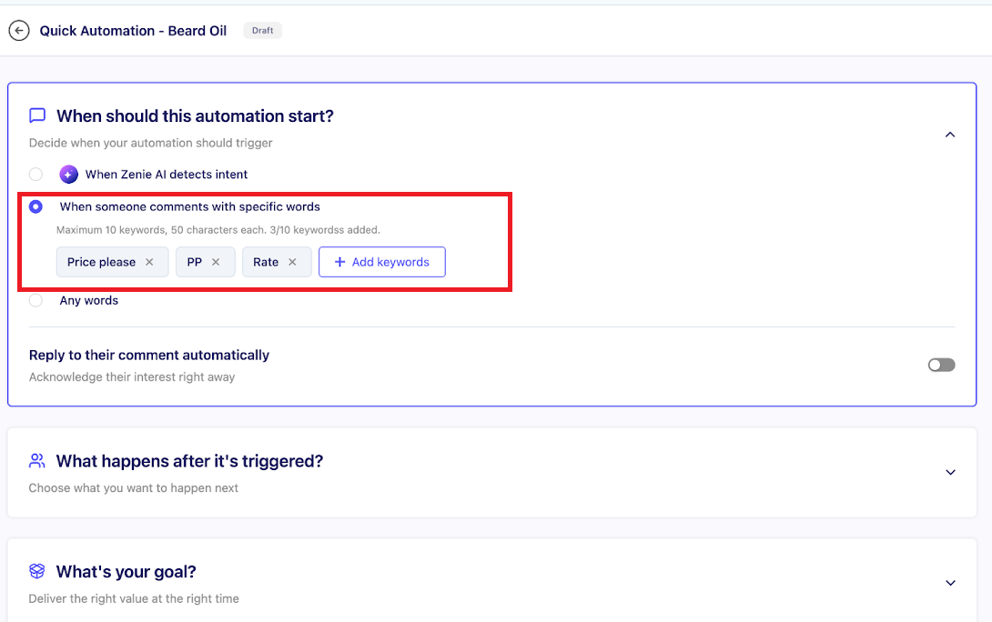 This means if someone asks about price in any wording or language, ZEPIC will automatically recognize it and trigger the automation.