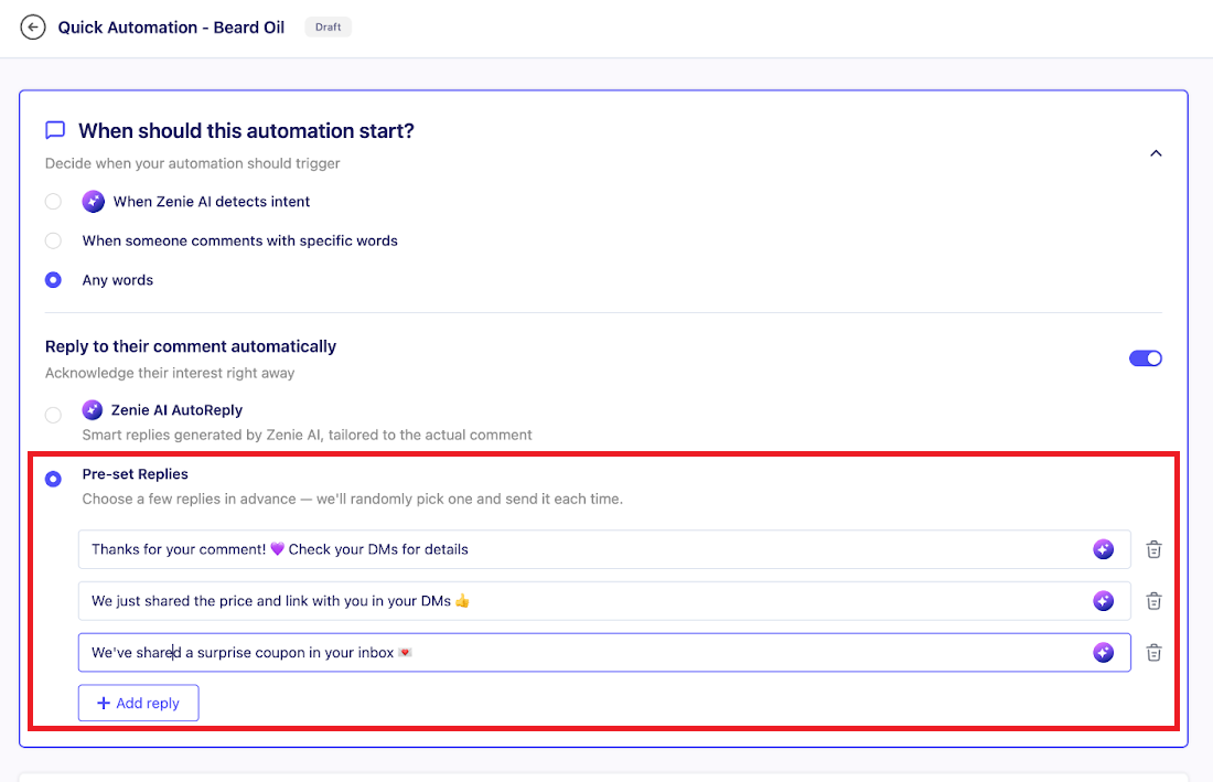 You’re all set to create comment automations on ZEPIC!