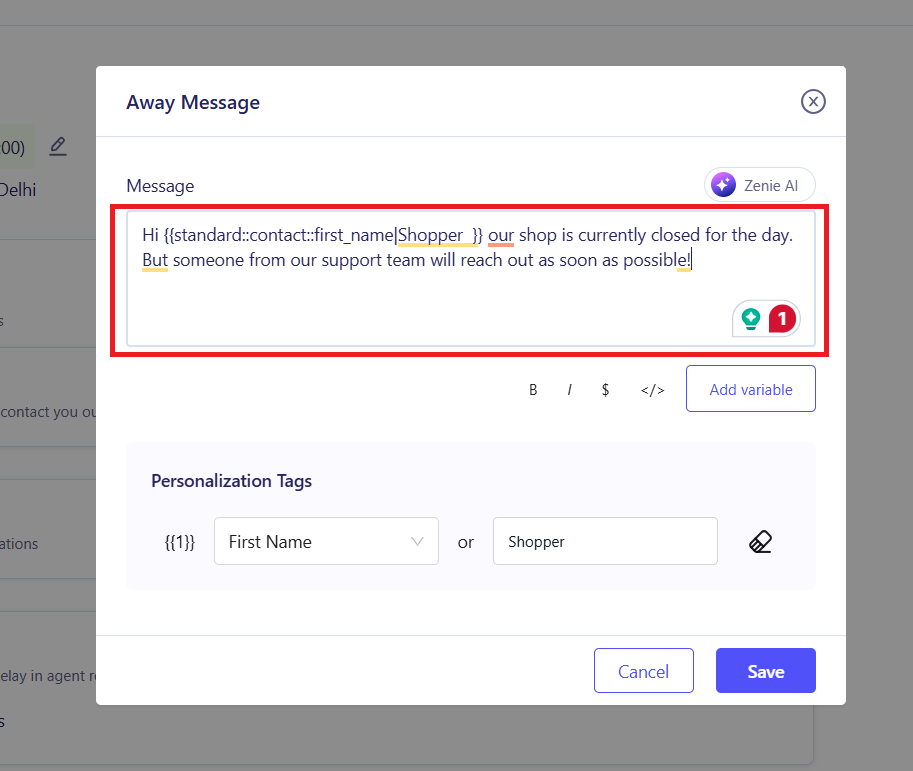 - Reminder Messages: For conversations where the customer has not responded for a duration of time, you can send a reminder message indicating that the ticket will be closed if there aren’t any additional queries.