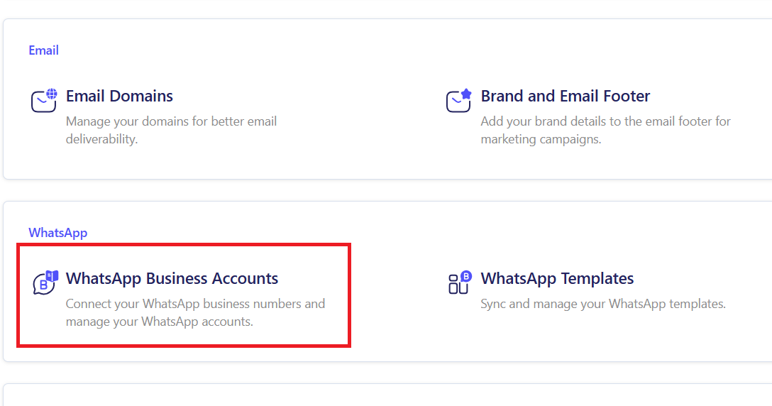 - Navigate to the WhatsApp Business section in the settings section of your ZEPIC Admin dashboard.